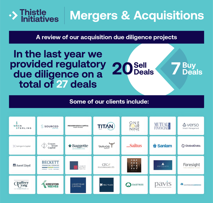 - Thistle Initiatives provides Wren Sterling Financial Group with regulatory due diligence support on the acquisition of Critchleys Financial Planning LLP