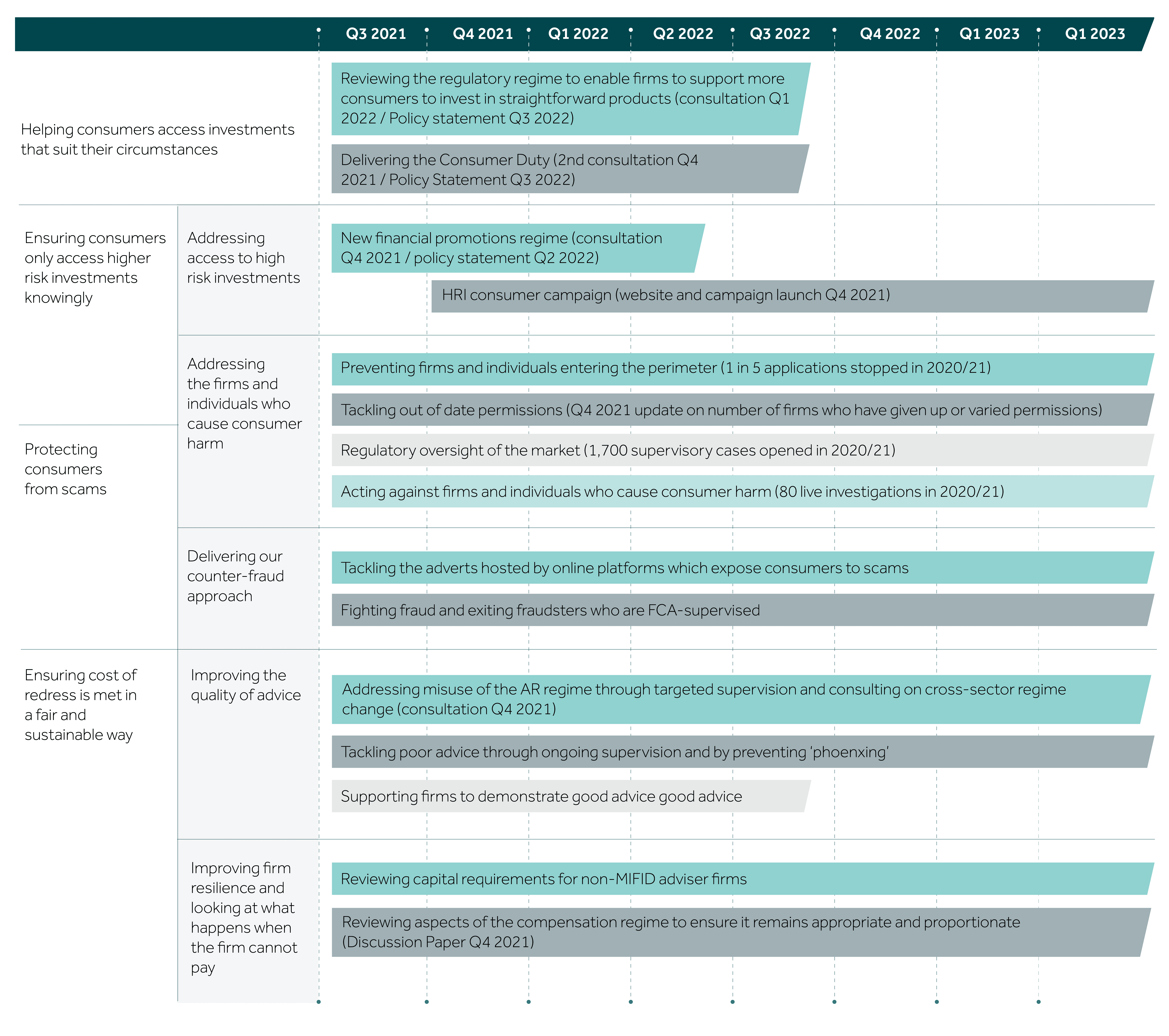 In September 2021, the FCA published a new strategy aimed at giving consumers the confidence to invest using a high-quality, affordable advice market, which is intended to lead to fewer people being scammed or persuaded to invest in products too risky for their needs. The FCA will publish metrics to assess whether these outcomes are being met.