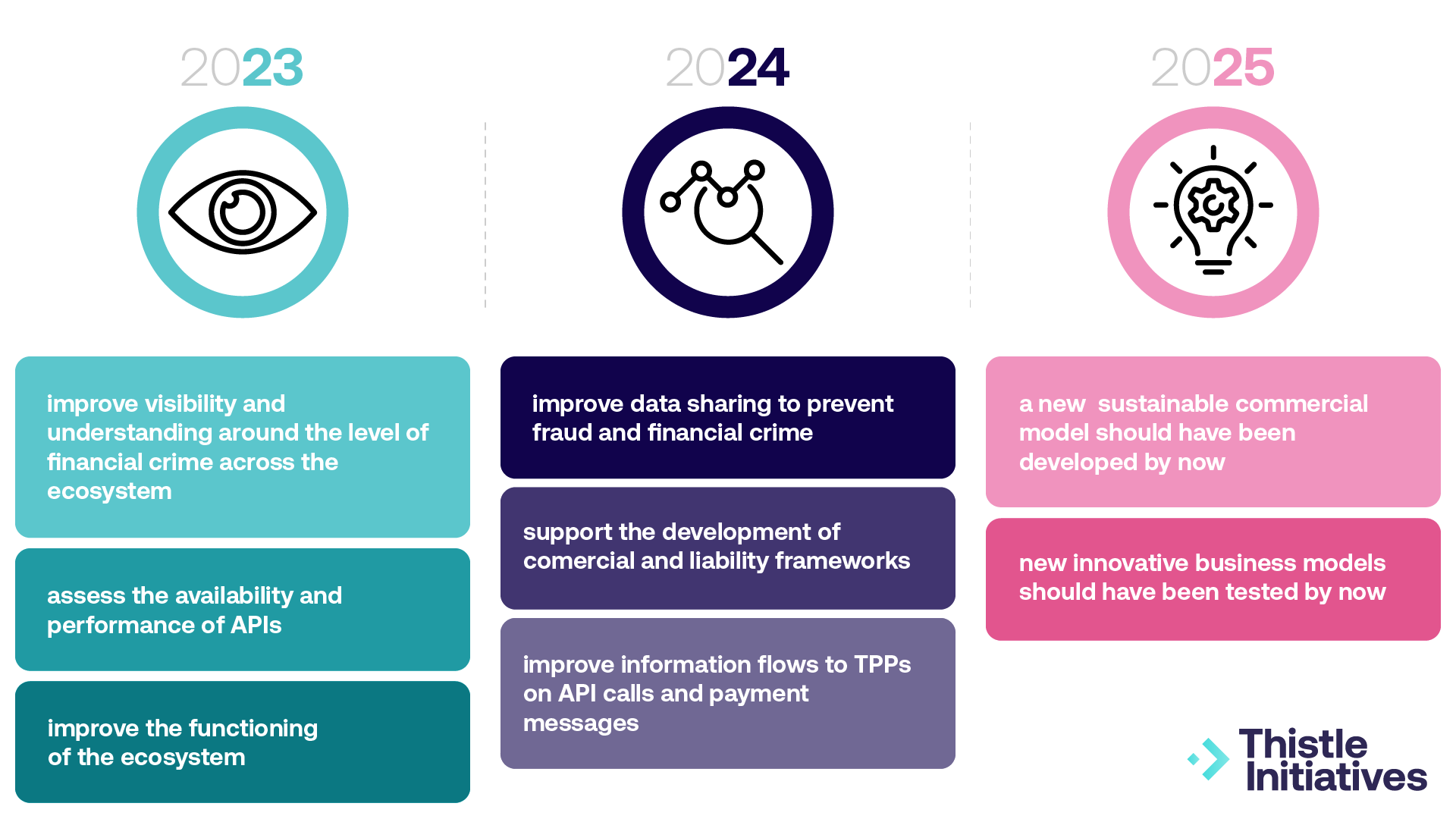 - Levelling up availability and performance, ensuring open banking application programming interface (API) availability and performance is consistently high in the ecosystem. The regulators aim to collect regular data on API availability and performance from all ecosystem participants and are asking all participants to assist in the development of a data collection and reporting template for all account servicing payment service providers (ASPSPs) and third-party providers (TPPs). Ecosystems need to submit their proposal by Q2 2023.
